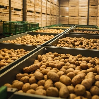 Die fachgerechte Lagerung von Kartoffeln ist entscheidend für ihre Haltbarkeit und Qualität. In speziell dafür vorgesehenen Lagerräumen werden Temperatur, Luftfeuchtigkeit und Belüftung kontrolliert. So bleiben die Kartoffeln über einen längeren Zeitraum frisch und behalten ihre Qualität.